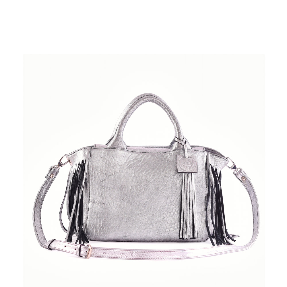 Handcrafted from premium quality leather, this compact bag features refined studded accents that give it a subtle but striking rock-inspired character. Its rich silver tone ensures a versatile look that complements both casual and elevated outfits. Every detail — from the carefully selected leather to the artisan stitching and finishing — showcases a thoughtful design rooted in tradition and crafted for today.